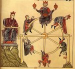 The Wheel of Fortune, Hortus Deliciarum, copy of miniature from Manuscript by Herrad of Landsburg (1130-1195), Hohenburg Abbey, Alsace.